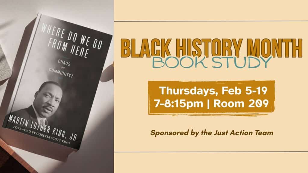 Balck History Month Book Study Thursdays: Feb. 5-19 | 7-8:15pm in Room 209 In this prophetic work, Dr. King offers a clear-eyed analysis of American race relations and the state of the movement after a decade of civil rights efforts. He lays out his hopes and plans for a more just future, calling attention to […]